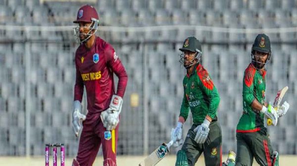 রিশাদের ঘূর্ণিতে ৩৯ ওভারে ১৩৩ রানে গুটিয়ে যায় ওয়েস্ট ইন্ডিজ। একপ্রান্তে কিছুটা লড়াই করলেও অন্যপ্রান্তে কেউই দাঁড়াতে পারেননি। ইনিংসের মাঝপথেই হাল ছেড়ে বসে ক্যারিবীয়রা, যারা একসময় ৫১/০ থেকে হারায় শেষ ১০ উইকেট মাত্র ৮২ রানে।