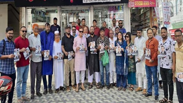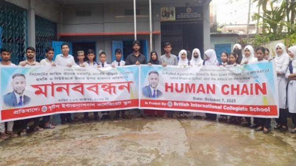 শিক্ষানুরাগী জাহিদ খাঁনকে হুমকির প্রতিবাদে শিক্ষক ও শিক্ষার্থীদের মানববন্ধন