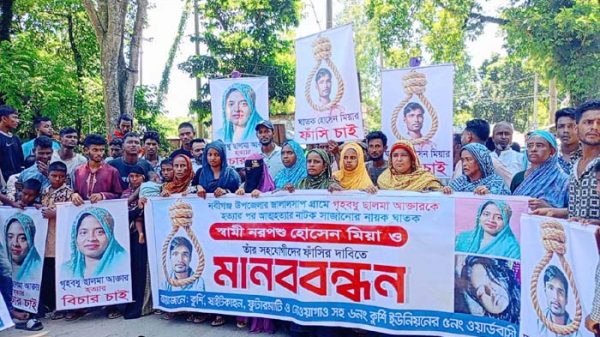 নবীগঞ্জে গৃহবধুকে হত্যার প্রতিবাদে মানববন্ধন ও বিক্ষোভ
